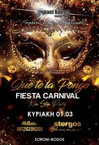 Το 21ο καρναβάλι Σορωνής βάσει και των πρόσφατων εξελίξεων μπορεί αναγκαστικά να ακυρώθηκε. Το party όμως στην Σορωνή δεν σταματάει ποτέ. Την Κυριακή 1 Μαρτίου ο Ματθαίος Χατζηγεωργίου και ο Στέργος Κοσμάς βάζουν «φωτιά» στα decks του Πάει Καιρός από τις 4 το απόγευμα μέχρι και το ξημέρωμα της καθαρής Δευτέρας. Είναι γνωστό σε όλους ότι η Σορωνή γνωρίζει καλά από τέτοιες διοργανώσεις και φημίζεται για τα party της όλα αυτά τα χρόνια.