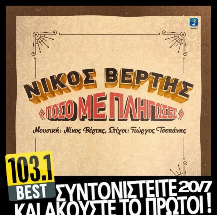 O Νίκος Βέρτης, ο κορυφαίος Έλληνας ερμηνευτής της γενιάς του, λίγους μήνες μετά την τεράστια επιτυχία που σημείωσε το τραγούδι «Si on n’aime qu’une fois / H Λέξη Σ’ Αγαπώ», σε συνεργασία με τον διεθνούς φήμη καλλιτέχνη Amir, που ακούσατε πρώτοι στον BEST 103,1, επιστρέφει με ένα τραγούδι που θα αγαπήσουμε από το πρώτο άκουσμα!